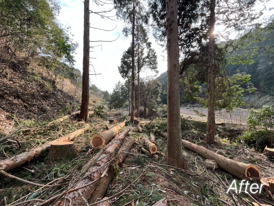 2026.02.07 光通し風通しのための環境配慮型植林針葉樹伐採(間伐) 光通し風通しのための環境配慮型植林針葉樹伐採(間伐) 工事内容 :光通し風通しのための伐採(間伐)/枝葉処理 【工事概要】 全部を切り倒してしまうのではなく、川の水温を保つために川沿いの木を残すなど、環境面を考えた時に、どの木を切っていいか、どの木は残したほうが良いかを複数人で考えた上で伐採を行った。 【工期】 3日